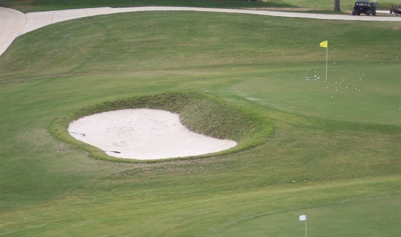 Our Bama premium bunker sand is a snow white silica sand used in the construction and maintenance of golf course bunkers throughout the southeast. With a penetrometer reading of 2.8 kg/cm it has a very low tendency to bury based on the fried-egg lie potential test.